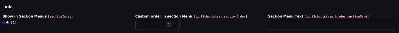 Wenn die Option “Custom section order” in der “Extension Configuration” aktiviert wurde, kann die Reihenfolge der Menu-Items bei Bedarf individuell angepasst werden: