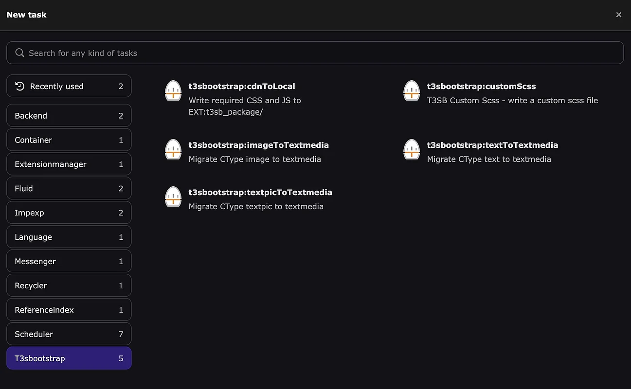 Mit den restlichen Scheduler Tasks kannst du die Content-Elemente “text”, “textpic” und “image” bei Bedarf nach “textmedia” migrieren.