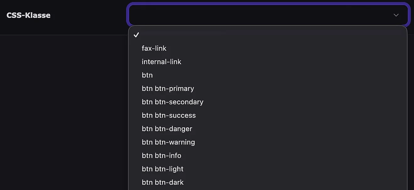 Beim erstellen eines Links kann im “Link Browser” eine Button-Class mit kontextbezogenen Farbklassen auswählt werden.