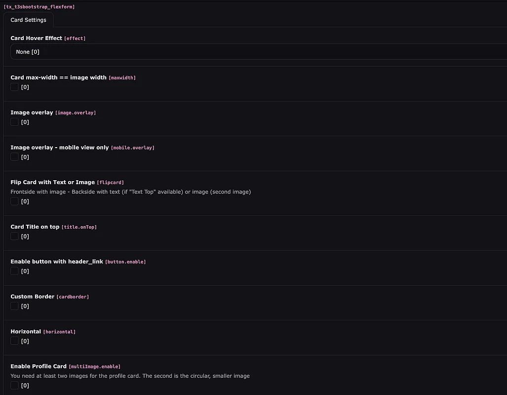 | Card Title on top | nur in Verbindung mit „image overlay“ |