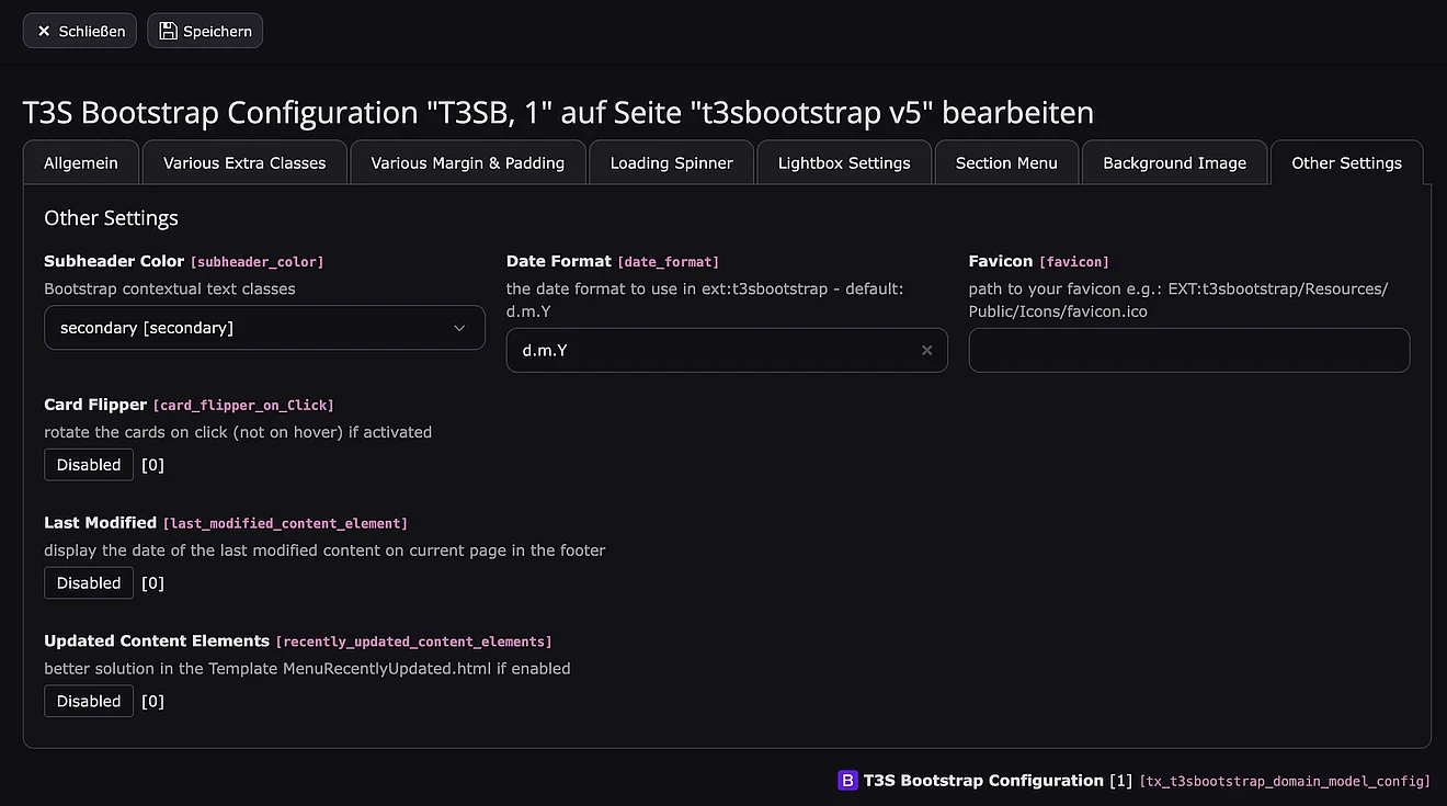 Die Konstanten (Konfiguration) aus der “Root-Page” können wie gewohnt für Unterseiten überschrieben werden - z.B.: