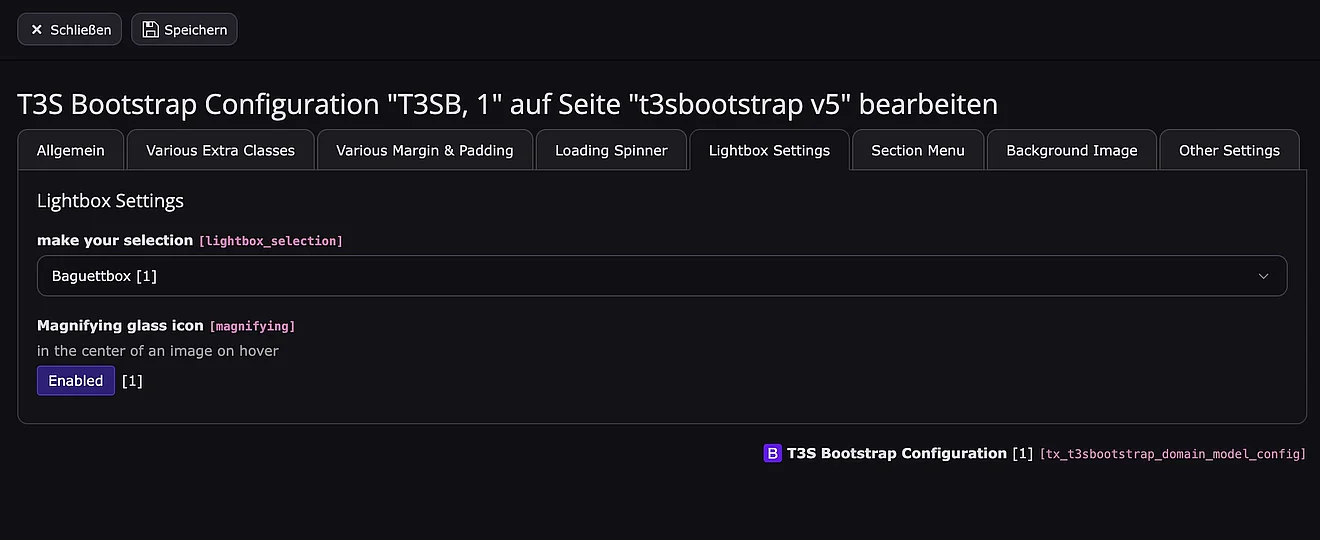 Nach dem Speichern der Konfiguration in die Datenbank, werden die Dateien t3sbconstants.typoscript und t3sbsetup.typoscript mit der gespeicherten Konfiguration in der EXT:t3sb_package erstellt bzw. aktualisiert.