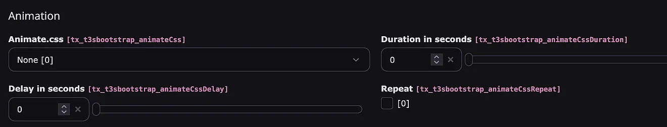 Wenn du "Animate.css" nutzen möchtest, kannst du dieses in der Extension Configuration unter “Advanced” aktivieren!