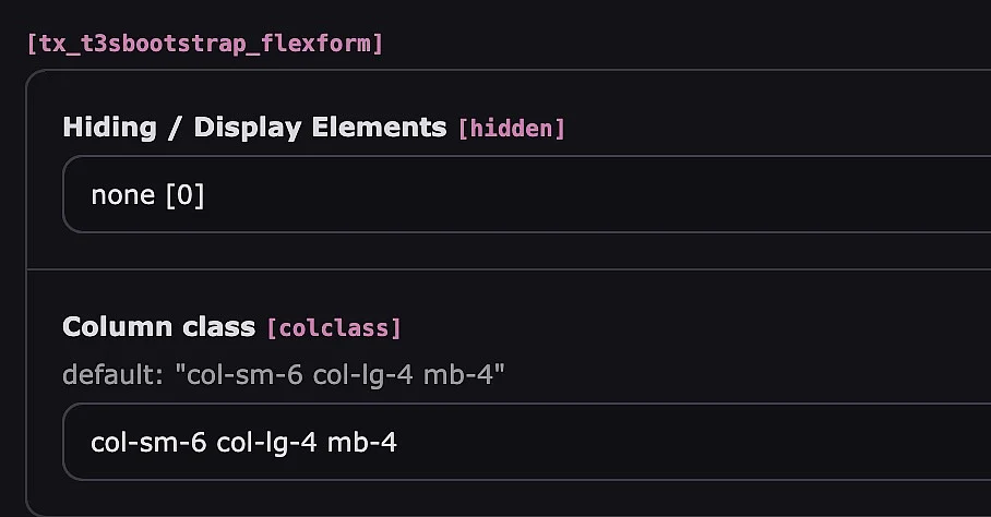 Anpassungen können im Imput-Feld "Column class" durchgeführt werden!