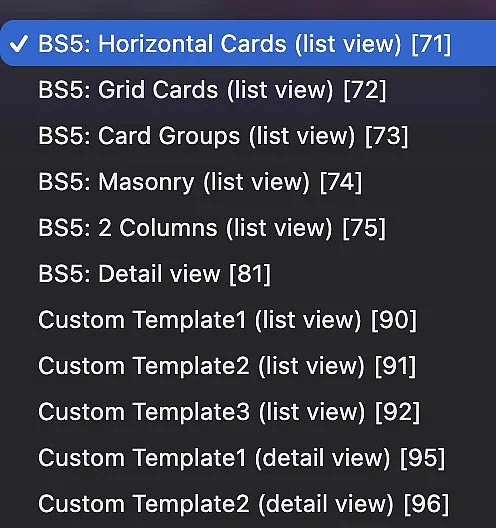 Danach stehen weitere "Template Layouts" (s. Screenshot) zur Verfügung.